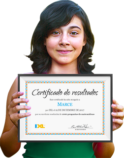 IXL me ha ayudado muchísimo en mis estudios; lo paso bien mientras aprendo cosas nuevas y además me dan recompensas por hacerlo. Me encanta recibir recompensas por mis esfuerzos. ¡Gracias, IXL!